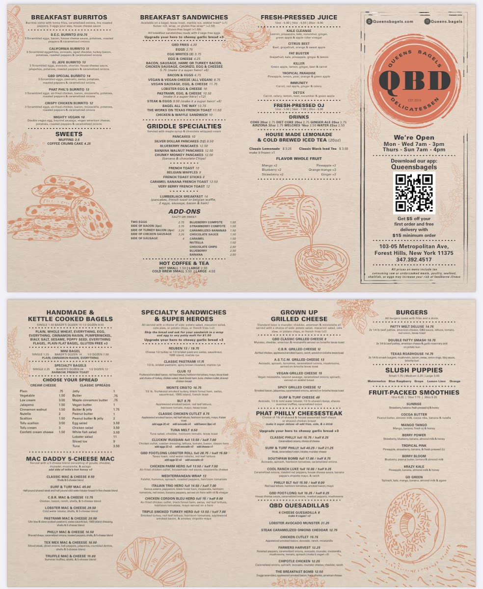 Queens Bagels & Delicatessen is the best bagel shop in Queens, NY. But they are not just all about bagels. They also have a great well-rounded breakfast and lunch menu with daily specials, including freshly pressed juices and vegan options. They take classic comfort food and add high-quality ingredients and twists to them! Their menu items include: Sandwiches, Cheesesteaks, Vegan Breakfast, Fruit Smoothies, and Breakfast Burritos. At Queens Bagels & Delicatessen, they treat every customer like a family member. They are committed to creating satisfying treats and drinks for you to enjoy. They also offer catering services for parties and special events, offering various delicatessen items for everyone at your party to enjoy. If you are looking for a quality bagel and sandwich shop and you love freshly made healthy drinks with the best-tasting food, visit Queens Bagels & Delicatessen today!